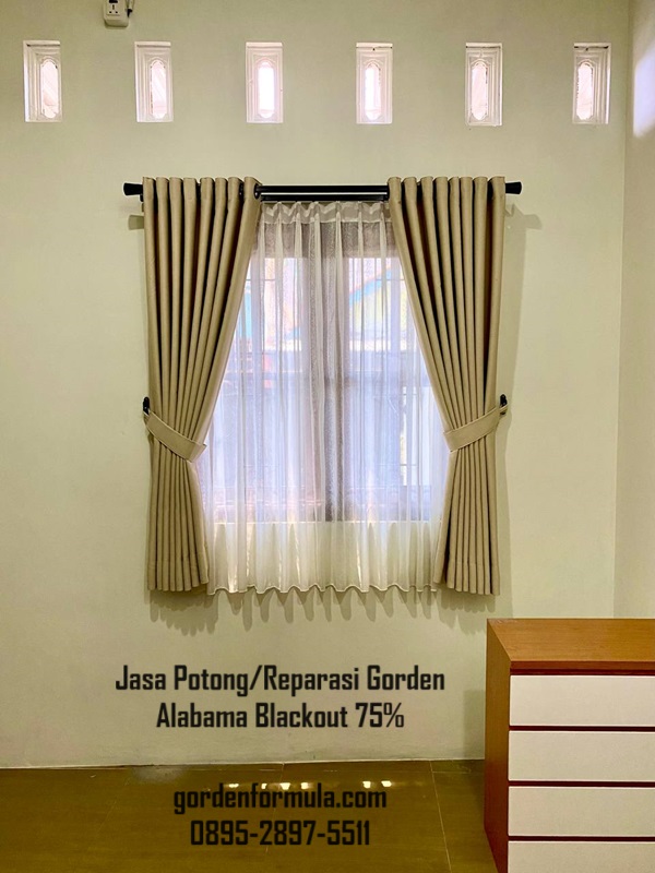Bismillah, Salah satu jasa layanan Gorden Formula yaitu Jasa Potong Gorden. Alhamdulillah saat ini kami kali ini mendapat orderan untuk memotong dan sekaligus treatment untuk memasang Gorden Blackout 75% Alabama A3 Warna Rustic Cream.